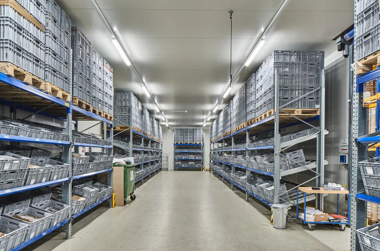 Viele der Besucherinnen und Besucher kennen den Logistikbetrieb von aussen und sehen, wie täglich mehrere Lastwagen zu- und wegfahren. Doch wie sieht es hinter den Kulissen aus? Dies verriet ein Rundgang durch den Logistikbetrieb. Bei Temperaturen von nur gerade mal 4 Grad führte Patrice Spahr die Gruppe durch den Betrieb und erklärte die Abwicklung der Logistik als den gesamten Prozess von der Planung, Steuerung und Durchführung der Warenbewegungen innerhalb des Unternehmens.