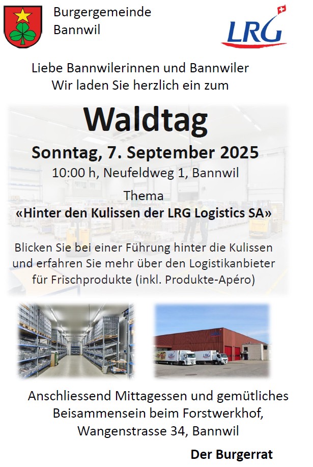 Der diesjährige Waldtag fand unter dem Motto "Hinter den Kulissen der LRG Logistics SA" statt. Der Anlass wurde wie immer am ersten Sonntag im September durchgeführt. Bei herbstlichen Morgentemperaturen besammelten sich kurz vor 10:00 Uhr knapp 65 Besucherinnen und Besucher vor dem Gebäude der LRG.